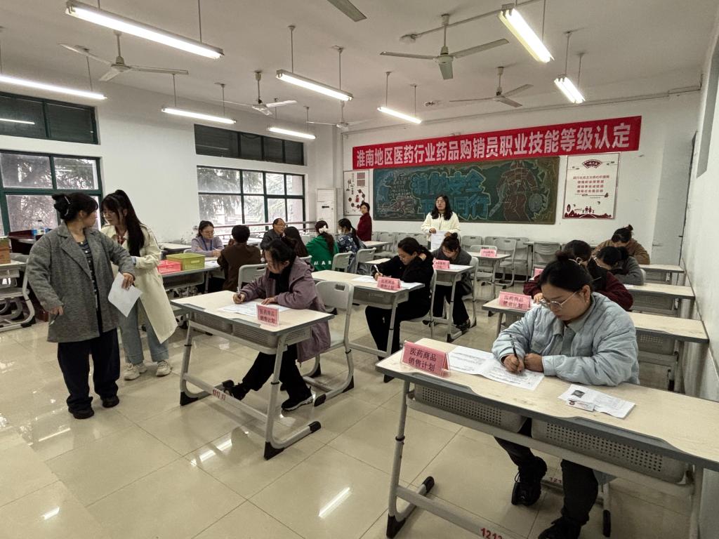 为深入贯彻落实人力资源社会保障部关于深化技工院校改革、推进职业技能提升行动的部署要求,立足淮南市医药行业高质量发展需求,精准对接医药流通领域技能人才培育痛点,加强淮南市医药流通领域技能人才队伍规范化建设,搭建行业技能人才成长通道,11月8日,安徽理工技师学院技能鉴定所与六安技师学院携手合作,成功开展淮南市医药行业药品购销员职业技能等级认定工作,来自淮南市医药行业相关从业人员及六安技师学院的多名考生参加了本次认定考核。